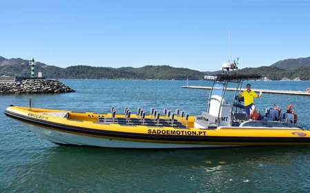 Erlebe die atemberaubende Schönheit des Atlantiks bei einer rasanten Delfinbeobachtungstour ab Lissabon! Spüre den Fahrtwind im Gesicht, während...
