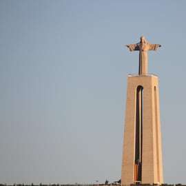 Dann radeln wir durch die oberen Viertel von Almada, bis wir die riesige Cristo-Rei-Statue erreichen. Das Denkmal ist über 110 Meter hoch und segnet die Stadt seit über 60 Jahren. Es wurde als Dankeschön dafür gebaut, dass Portugal im Zweiten Weltkrieg verschont blieb. Hier kannst du das atemberaubende Panorama der Stadt und der Ponte 25 de Abril genießen.