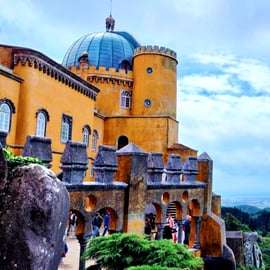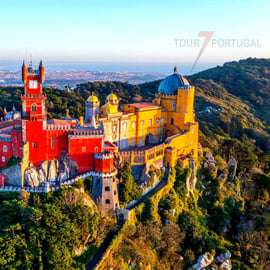 Dein erster Halt ist der ikonische Pena-Palast, der auf den Hügeln von Sintra thront. Dieses romantische Meisterwerk aus dem 19. Jahrhundert mit seinen leuchtenden Farben, den kunstvollen manuelinischen und maurischen Details und den weiten Aussichten bietet einen magischen Start in deine Tour. Schlendere durch die umliegenden Gärten, ein üppiges Wunderland aus exotischen Pflanzen, versteckten Wegen und bezaubernden Seen, bevor du zu deinem nächsten Ziel aufbrichst.