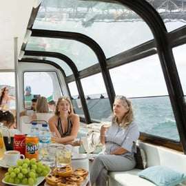 Das Wetter ist kein Problem, denn unser Boot kann vollständig verglast werden, um maximalen Komfort zu gewährleisten und gleichzeitig den Panorama-Ausblick zu erhalten, sodass das Erlebnis bei Regen oder Sonnenschein reibungslos fortgesetzt werden kann. Der Zugang zum Hafen ist nur in Begleitung eines unserer Mitarbeiter gestattet. Bitte beachte, dass die Tour auf einem kleineren Boot durchgeführt werden kann, wenn die Mindestteilnehmerzahl von 10 Personen nicht erreicht wird. Du wirst im Voraus darüber informiert.