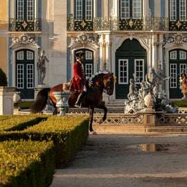 Erlebe die zeitlose Schönheit der Portugiesischen Schule für Reitkunst in Lissabon. Eingebettet in die Gärten des Nationalpalastes von Queluz bewahrt diese einzigartige Einrichtung die traditionellen Reitmethoden des portugiesischen Hofes aus dem 18.