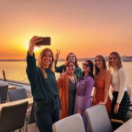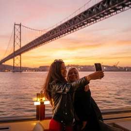 Während du gemächlich den Tejo entlang gleitest, eröffnen sich dir einzigartige Perspektiven auf die Wahrzeichen Lissabons: Die imposante 25. April-Brücke, der geschichtsträchtige Praça do Comércio und der malerische Belém-Turm erstrahlen im goldenen Licht der Abendsonne. Halte die schönsten Momente mit unvergesslichen Fotos fest – eine Sightseeing-Tour der besonderen Art!
