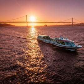 Lass dich verzaubern: Eine unvergessliche Abendfahrt auf dem Tejo erwartet dich! Genieße den warmen Schein der portugiesischen Sonne, während Lissabons Wahrzeichen majestätisch am Horizont vorbeiziehen. An Bord unseres komfortablen und modernen Schiffs erwartet dich ein entspannter Sonnenuntergangstrip – inklusive erfrischendem Willkommensgetränk.