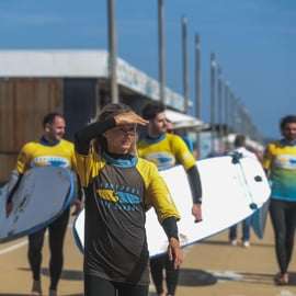 Nachdem du dich ausgerüstet hast, bringen dich unsere Surflehrer zu einem schönen Strand, wo du dich aufwärmst und alle Techniken für das Surfen lernst und alle notwendigen Sicherheitsregeln kennst.