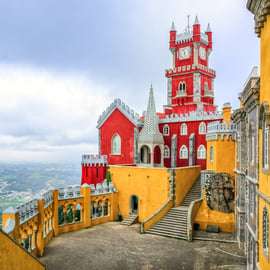 Erleben Sie den Atem der Vergangenheit, wenn Sie den Palácio Nacional da Pena betreten, einer der bedeutendsten Sehenswürdigkeiten Portugals. Als Inbegriff der romantischen Architektur des 19. Jahrhunderts thront der Prunkbau auf einer Felskuppe am zweithöchsten Punkt der Serra de Sintra.-