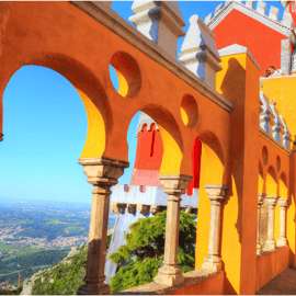 Um diesen zauberhaften Tag ausklingen zu lassen, fahren wir auf den Gipfel der Berge, um den Palácio da Pena zu besuchen, ein wahres Symbol Portugals mit seiner romantischen Architektur und seinen leuchtenden Farben. Genieße die Panoramablicke und tauche ein in die Geschichte dieses atemberaubenden Palastes.