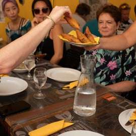 We presenteren je een selectie van smaken, culturele invloeden en kooktechnieken door middel van kleine bordjes en de juiste dranken (wijn, likeur, sap), en dit alles terwijl je door verborgen hoekjes van de stad dwaalt.