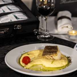 Je ontdekt een verscheidenheid aan traditionele gerechten, van exquise voorgerechten tot hoofdgerechten die het beste van de Portugese gastronomie vertegenwoordigen. Tijdens het diner wordt je begeleid door een sensuele cabaretshow, die een magische en omhullende sfeer creëert.