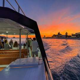 Ervaar het gouden uur van Lissabon tijdens een ruime, rustige, inclusieve en soulvolle boottocht bij zonsondergang op de Taag. Geniet van lokale wijn, muziek en reflectie terwijl de stad gloeit. Een bewuste reis over de Taag.