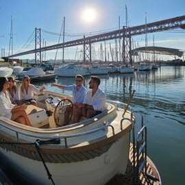 Vaar met een kleine groep op een luxe motorboot over de rivier de Taag. Geniet van een open bar, premium voorzieningen aan boord en professionele verhalen.