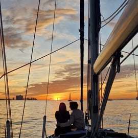 Welkom aan boord! Begin aan een rondleiding door Lissabon vanuit een heel andere hoek. Sluit je aan bij je gepassioneerde gids op een zeilboot bij zonsondergang en leg de bezienswaardigheden van de mooiste plekken in de stad vast.