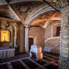 När du anländer kan du promenera runt i Évoras historiska cetrum med din guide och upptäcka dess skiktade förflutna. Stå framför det romerska templet, ett av de bäst bevarade romerska monumenten i Portugal, och lär dig hur det har överlevt i nästan tvåtusen år. Fortsätt sedan till ett av landets mest fascinerande landmärken, benkapellet. Kapellet är helt dekorerat med mänskliga ben och skallar och erbjuder en kraftfull reflektion över livets bräcklighet, medan dess berömda inskription tyst påminner besökarna: "Vi ben som är här, väntar på dina."