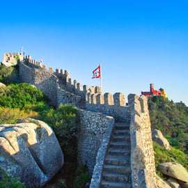 Sedan utforskar vi Castelo dos Mouros, en medeltida fästning som erbjuder panoramautsikt över Sintra, Palácio da Pena och Atlanten.