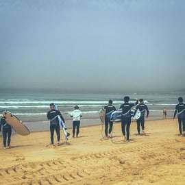 Möt din instruktör på surfskolan och bege dig till stranden. Du får en våtdräkt och en surfbräda och lär dig grunderna i att surfa på sanden. Ge dig sedan ut på vågorna och sätt dina nya färdigheter på prov.