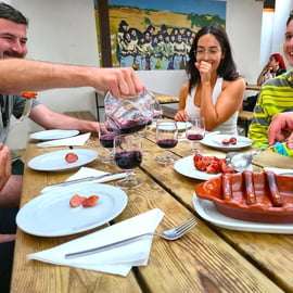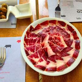 Ditt matäventyr börjar med ett varmt välkomnande: Pastel de Bacalhau – en krispig stekt torskpaj som serveras i Lissabons äldsta taverna. Som en andra förrätt kommer du att smaka på den rika iberiska skinkan (Pata Negra). Det är en smakrik start som introducerar dig till Portugals salta arv.