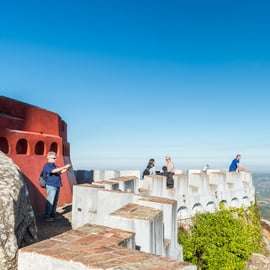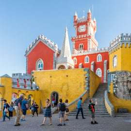 Vi börjar med upphämtning från ditt hotell i Lissabon och reser med ett luftkonditionerat, 8-sitsigt fordon till det fantastiska Pena Palace i Sintra. På en klippa med utsikt över kusten kan du beundra detta extravaganta palats med moriska och manuelinska motiv och panoramautsikt över de omgivande skogarna.